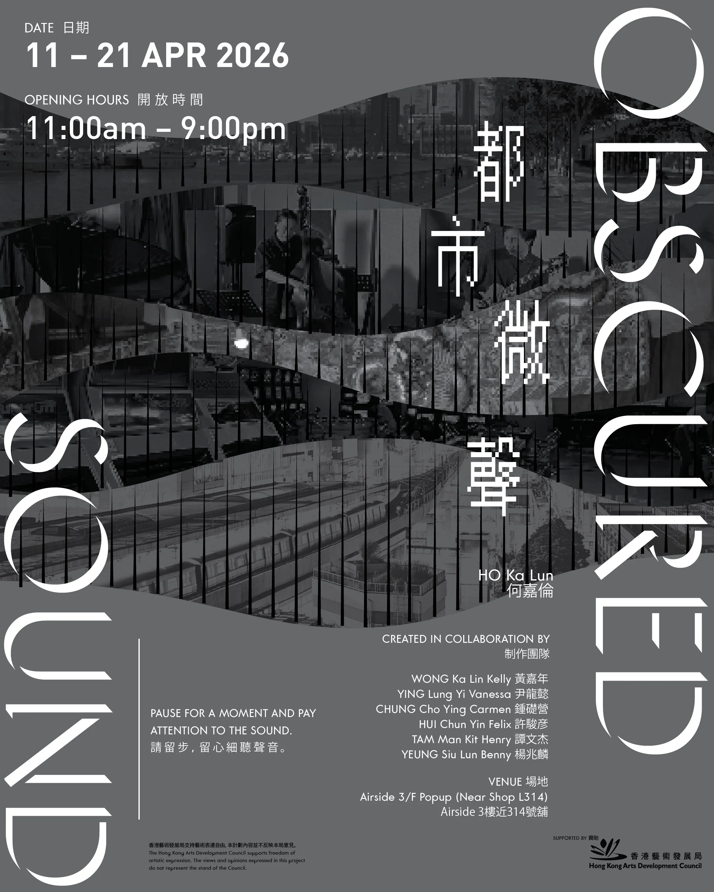 藝術家何嘉倫 Kalun 以線上聲音檔案庫和聲音裝置作媒介,將香港都市探索的注意力重新聚焦於聽覺上,讓參與者沉浸在城市裏獨一無二的聲音中。同時,由參與者分享的實地錄音,亦鼓勵他們更專注地聆聽周遭空間。此作品邀請參與者以聽覺重新理解隱藏於日常環境之中的社會文化脈絡,為這個城市提供一種嶄新的視角。